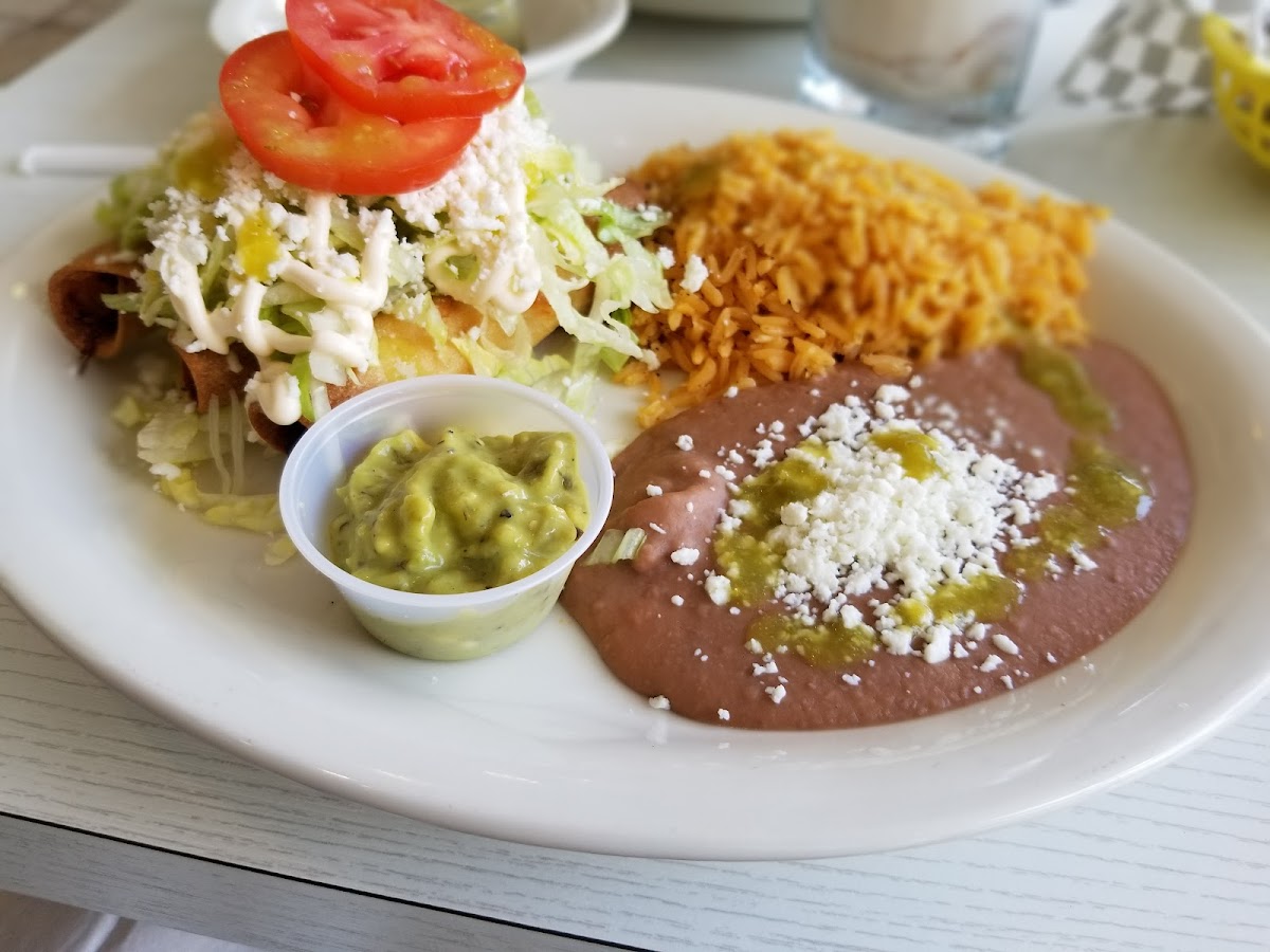 Amazing service and amazing food! We came here for lunch, and the restaurant was clean and sunny. The menu had lots of variety and great prices. We had the California burrito (minus cheese, beans, guacamole, and rice) and the chicken burrito. Both were delicious, especially the Carne Asada in the California burrito. They gave us complimentary chips and salsa with three types of salsas. Our server was so sweet and attentive, we had a great experience. Thank you! We'll be back!